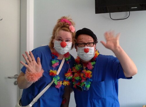 Nach 2 Wochen war auch wieder ein Klinikclown-Besuch angesagt, diesmal von 2 Clowninnen. Da ich hoffe, den nächsten Besuchstermin nicht mehr hier zu erleben, bedanke ich mich noch einmal für die aufmunternden (und sicher oft nicht einfachen) Besuche. Ihr macht einen tollen Job!